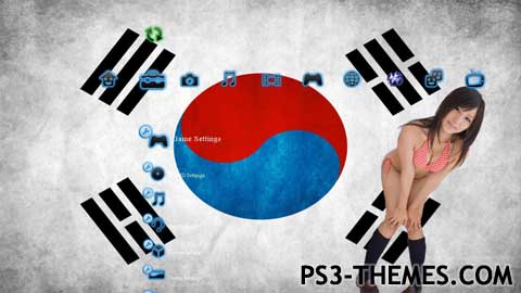 This is a theme about South Korea. It contains 1 HD and SD background, custom icons and custom sounds (icons and sounds of Andape´s “BlueAndBlack v3 Theme For PS3” theme).